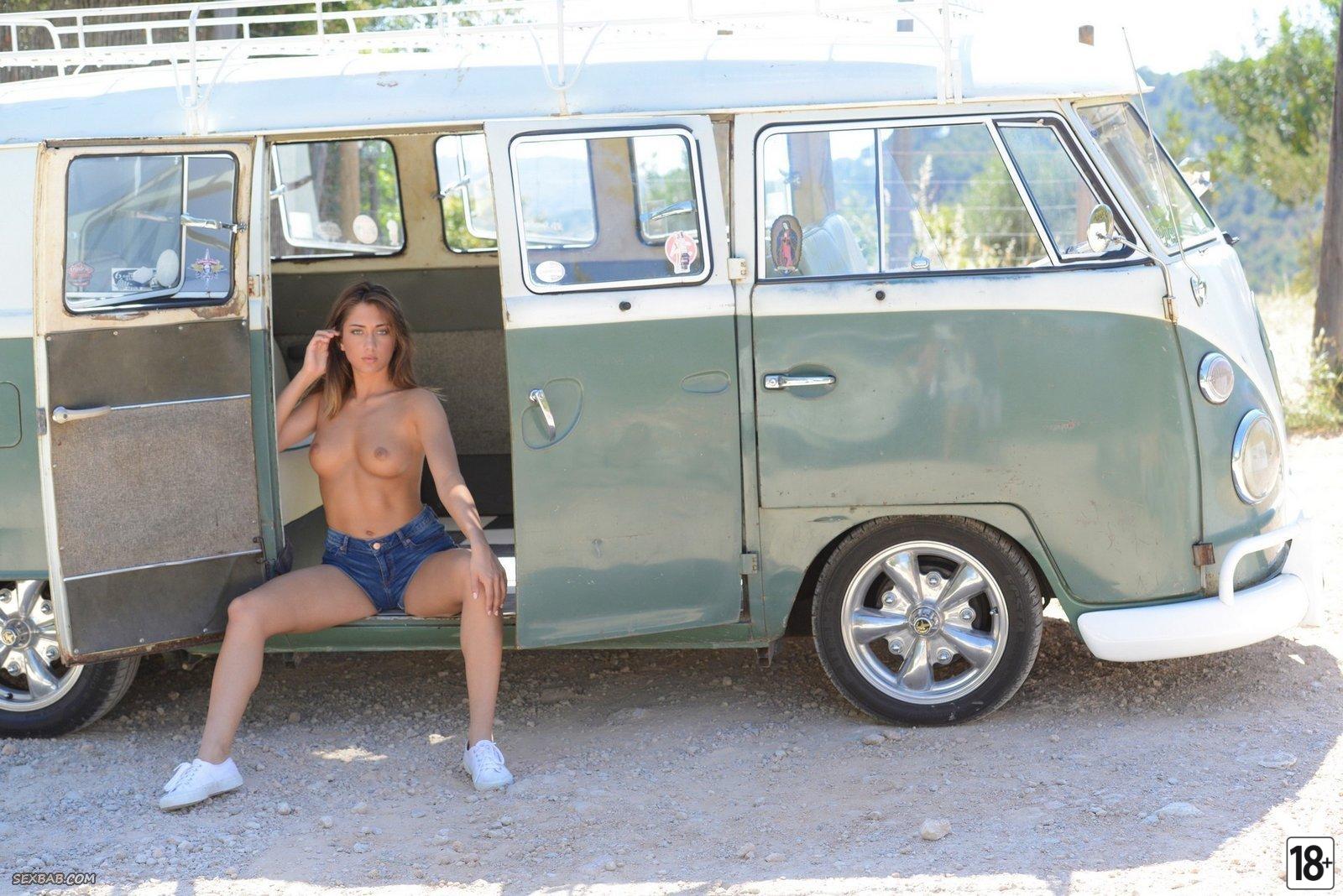 Прекрасная модель журнала Плейбой раздевается в старом фургоне Volkswagen. Она демонстрирует свои идеальные формы — упругую грудь и аппетитную попу с пышными, но аккуратными ягодицами. Но самое завораживающее — ее томный взгляд, способный покорить любого зрителя.…